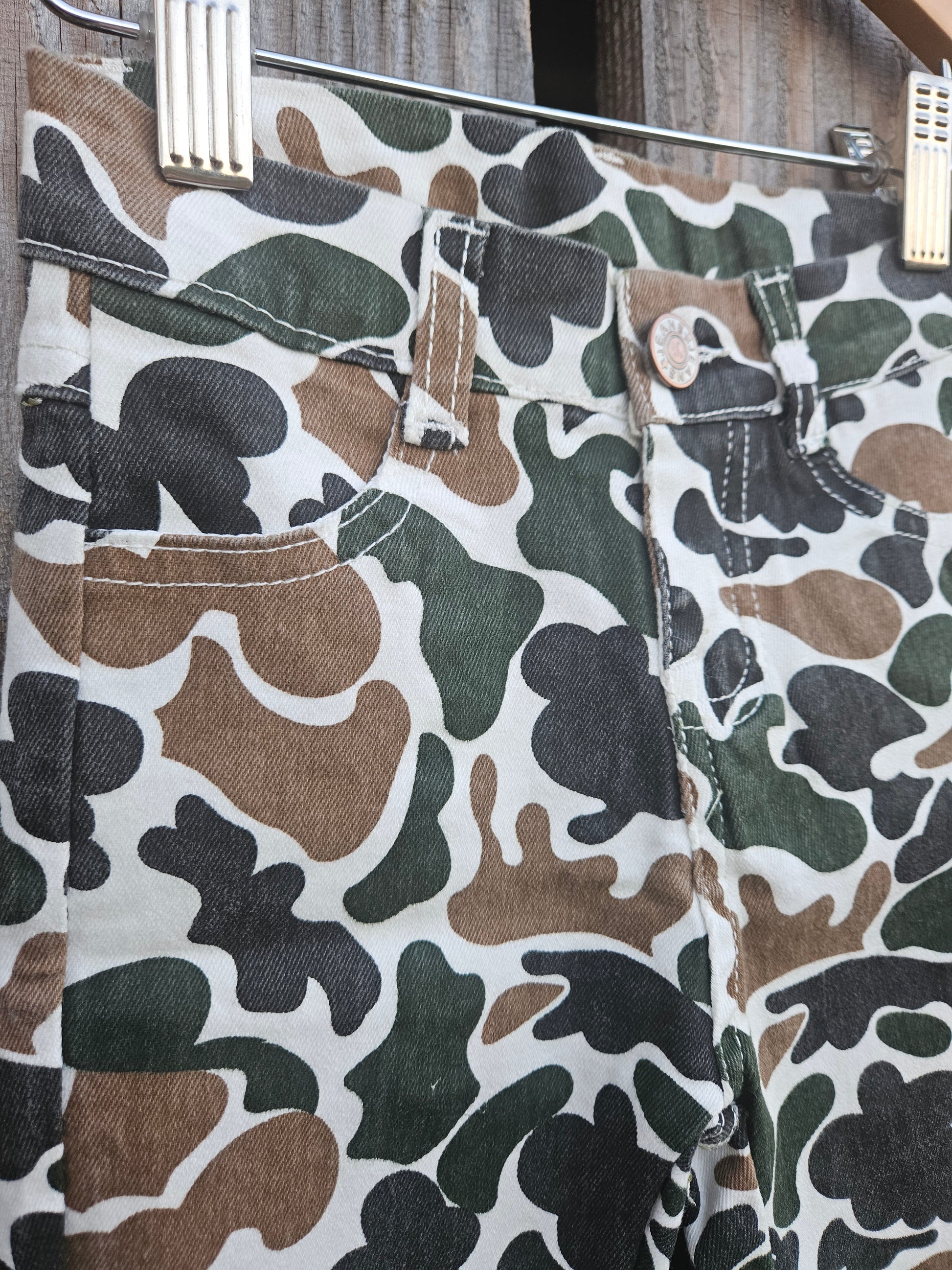 Get ready for adventure with these Boys Camo Denim Pants! Perfect for blending into the great outdoors, they combine rugged denim with a cool camo print. Whether exploring the woods or playing hide-and-seek, these pants keep your little one comfortable and ready to disappear into nature’s playground. Durable and stylish, they’re made for endless fun and discovery.