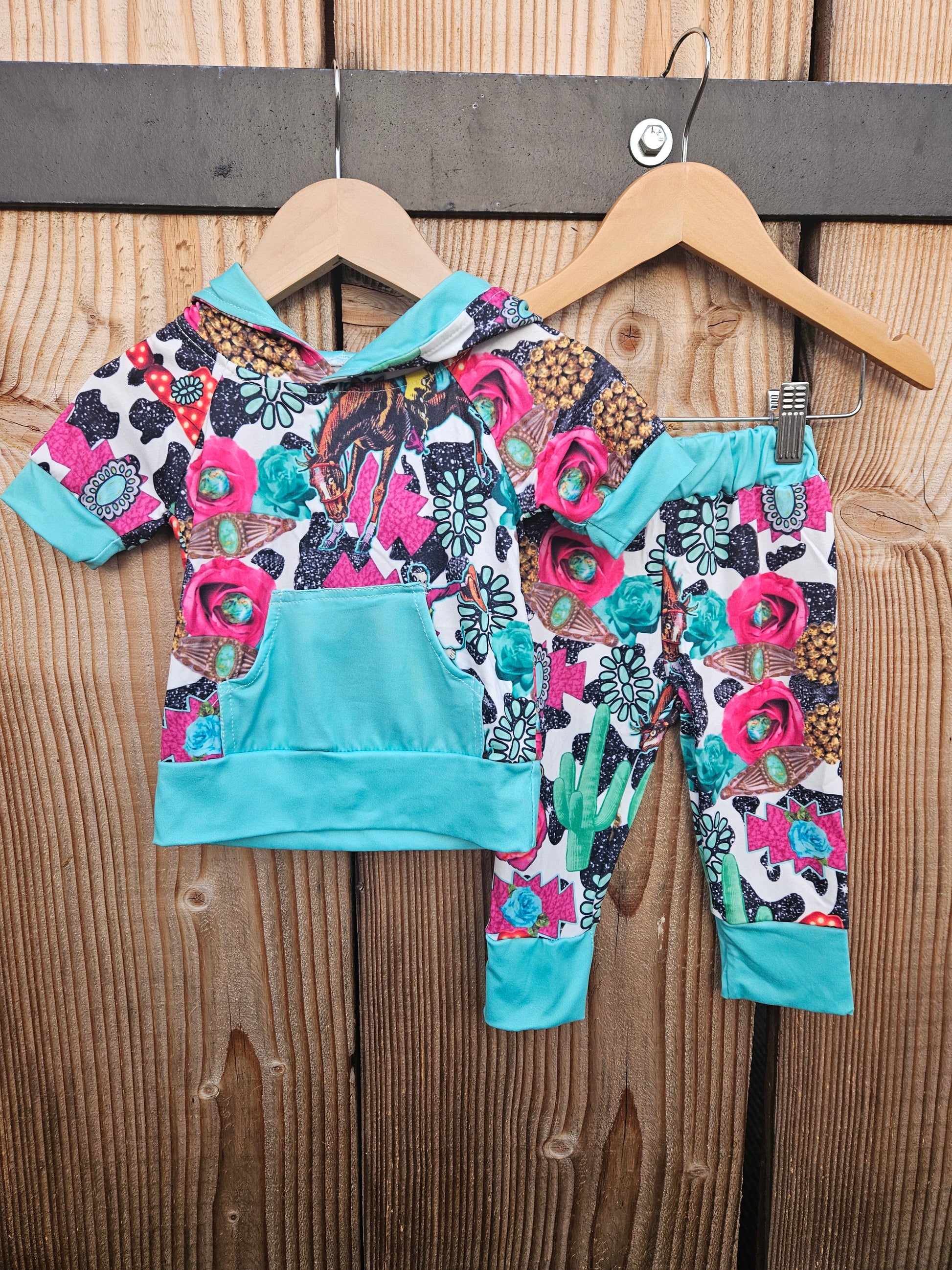 Kick back and relax in the Turquoise Concho Girls Jogger Set. Perfect for girls who prefer effortless style and cozy vibes. So soft and stylish, she'll want to wear it everywhere (yeah, even to bed!). Yeehaw!